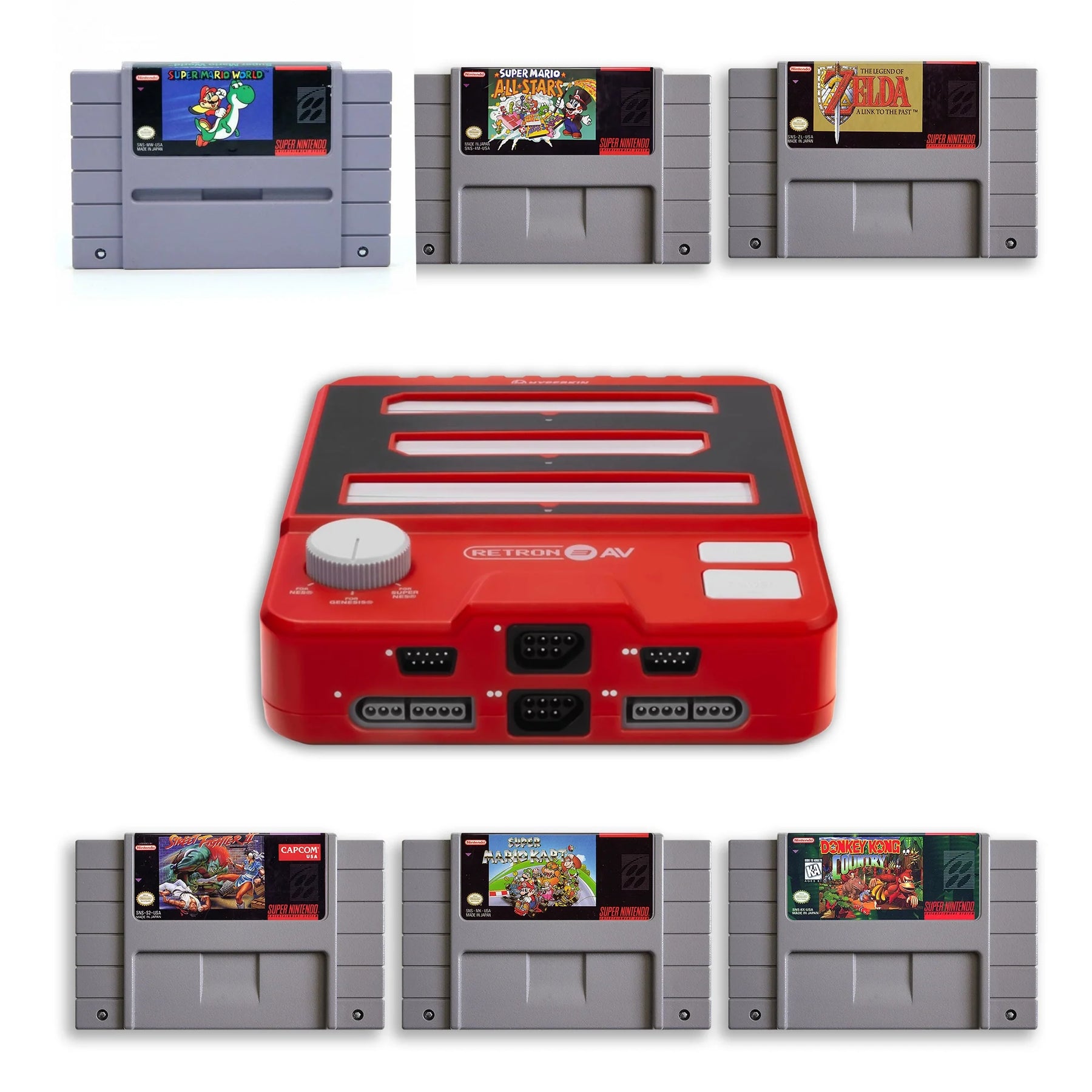 • Juegos: Super Mario World, Super Mario All-Stars, Donkey Kong Country 2, Super Mario Kart, Super Street Fighter II, The Legend of Zelda: A Link to the Past